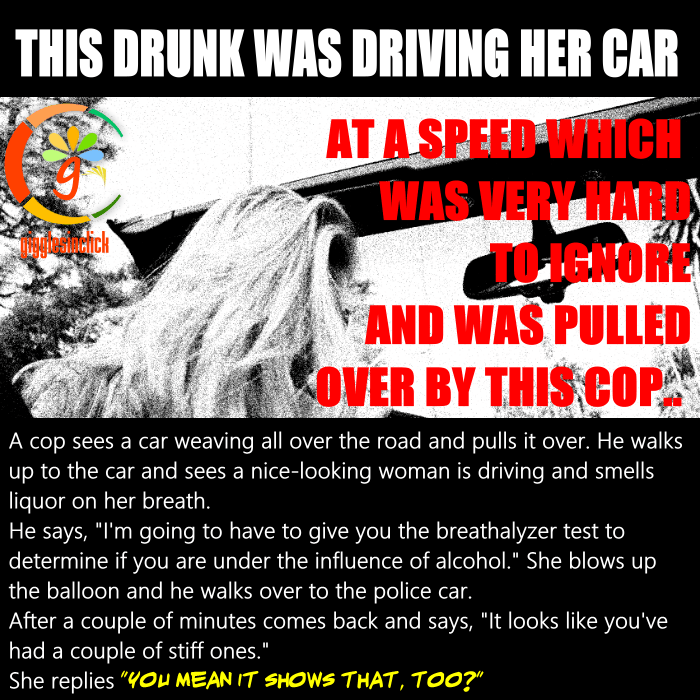 SPEEDING BLONDE, cop, drunk, test, hard ones, jokes, lol, night, giggles, gigglesinclick.com
