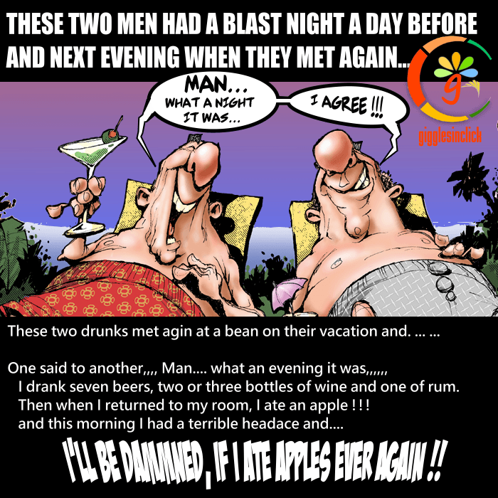 Last evening, these two friends drank too much and they met again on beach….