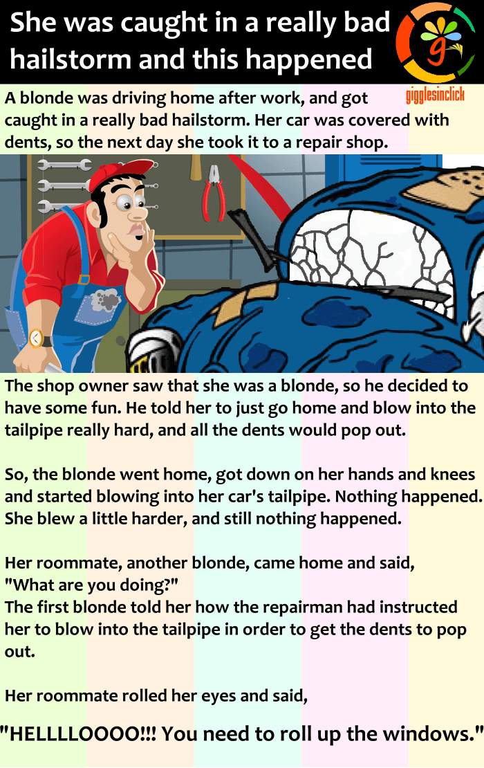 blonde, damaged car, jokes, giggles, funny images, gigglesinclick