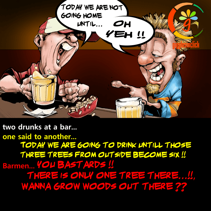 two drunks friends, bar, trees, barmen, amazed, jokes, giggles, gigglesinclick.com, lol